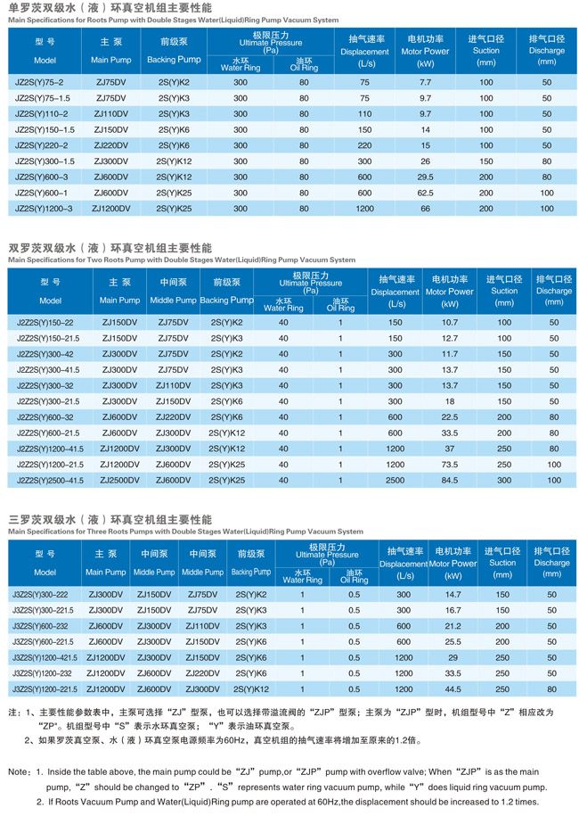 羅茨水環(huán)真空機(jī)組點(diǎn)連接可查機(jī)型配組和各類參數(shù):