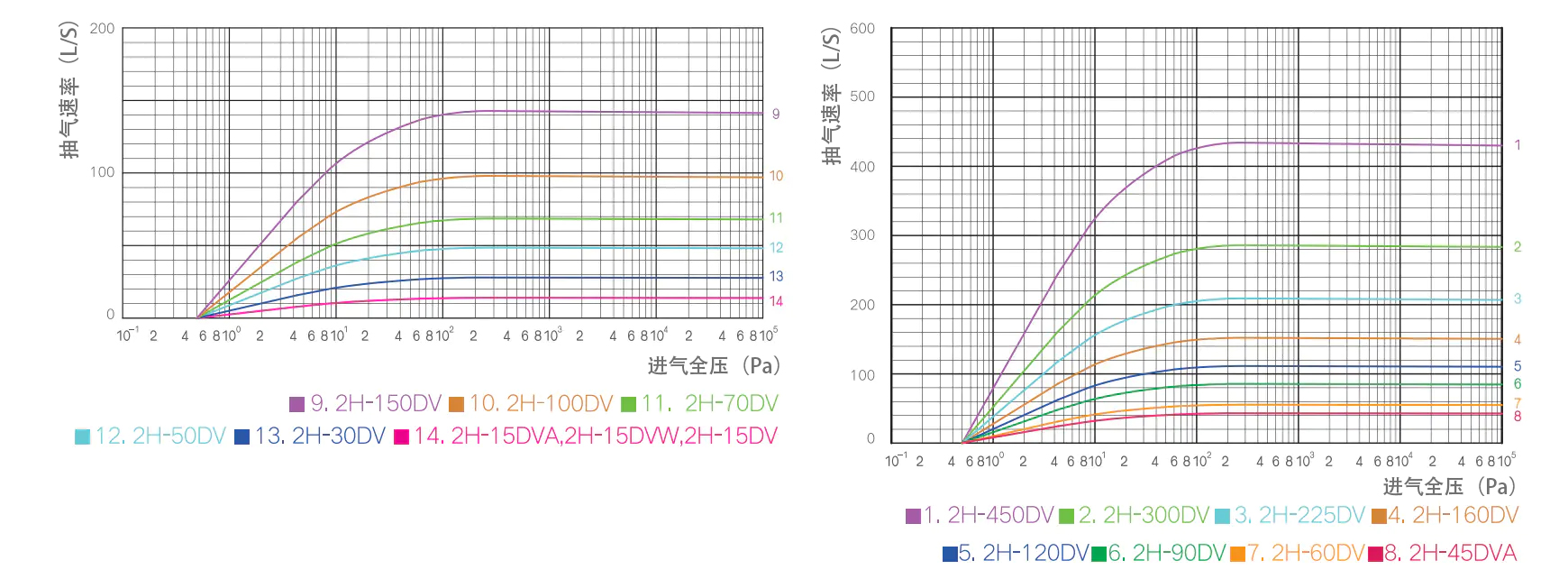 | 型號 | 抽氣速率 | 極限分壓 | 極限全壓 | 進氣口徑 | 排氣口徑 | 電機功率 | 冷卻水量(15℃) | ||||||